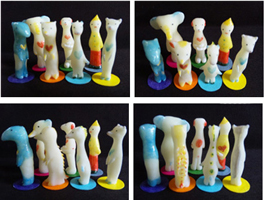 ![]() 「雲にのって来ました」「水の中から来ました」/「やさしい鬼」ズームイン 以上の8点。高さは約45〜75ミリです。 蓄光粘土で成形、彩色はネイルエナメルを使用しています。 蓄光粘土は太陽やライトの光を蓄え、暗いところで発光するのが面白くて、好みの素材です。 下の写真のように、やわらかくぼんやり〜と暗闇にうかびます。 知らずに見かけたら、ドキッとしちゃうかもです(笑) ![]() これは友達が以前撮ってくれた写真です。自分では上手く撮れなくて。 別の機会の作品ですが、すごくいい感じの佇まいに撮ってもらえて嬉しい。ありがとうHさん! 他にもお知らせしたいことがあるのですが、今日はここまでに。 また近々アップします。 |
